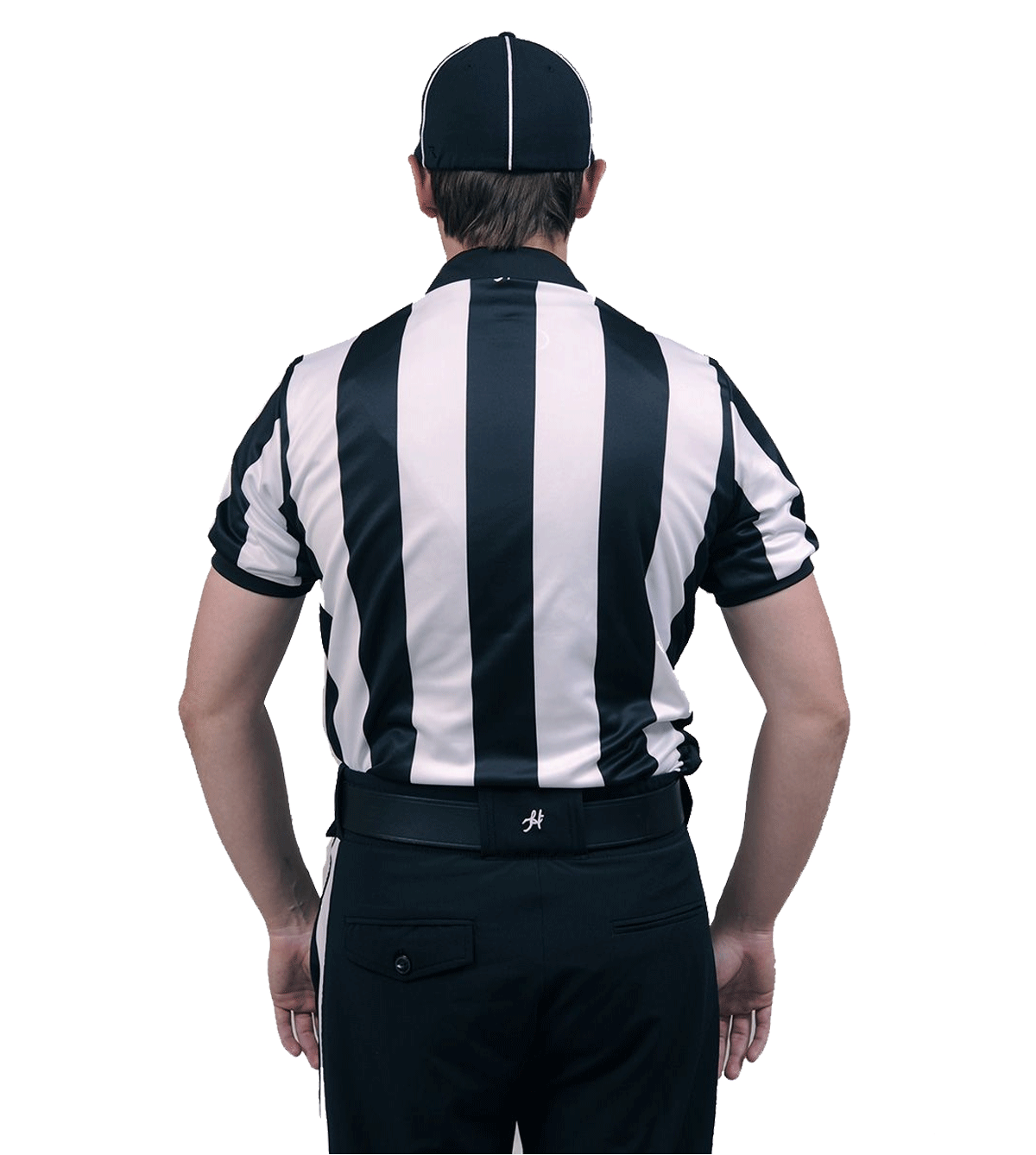 Premium performance fabrics normally reserved for your workout are now available for officiating! The Ultra Tech shirt is so lightweight and the cut is so comfortable that you may not even realize you're wearing your stripes. A great choice in the heat because of it's high wicking and fast drying properties. Wide black 'side panel' down the side under the arms.